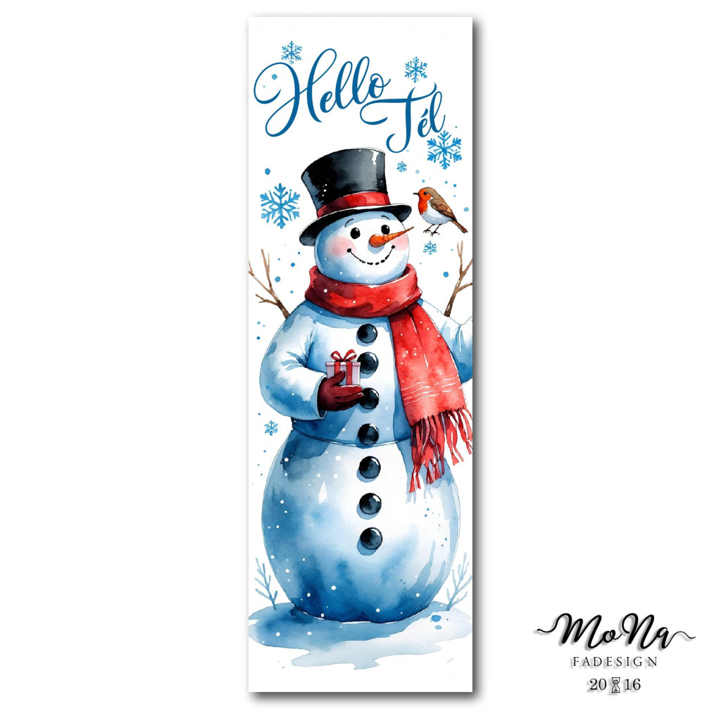 Téglalap- Hóember "Hello Tél" 20x6,5 cm